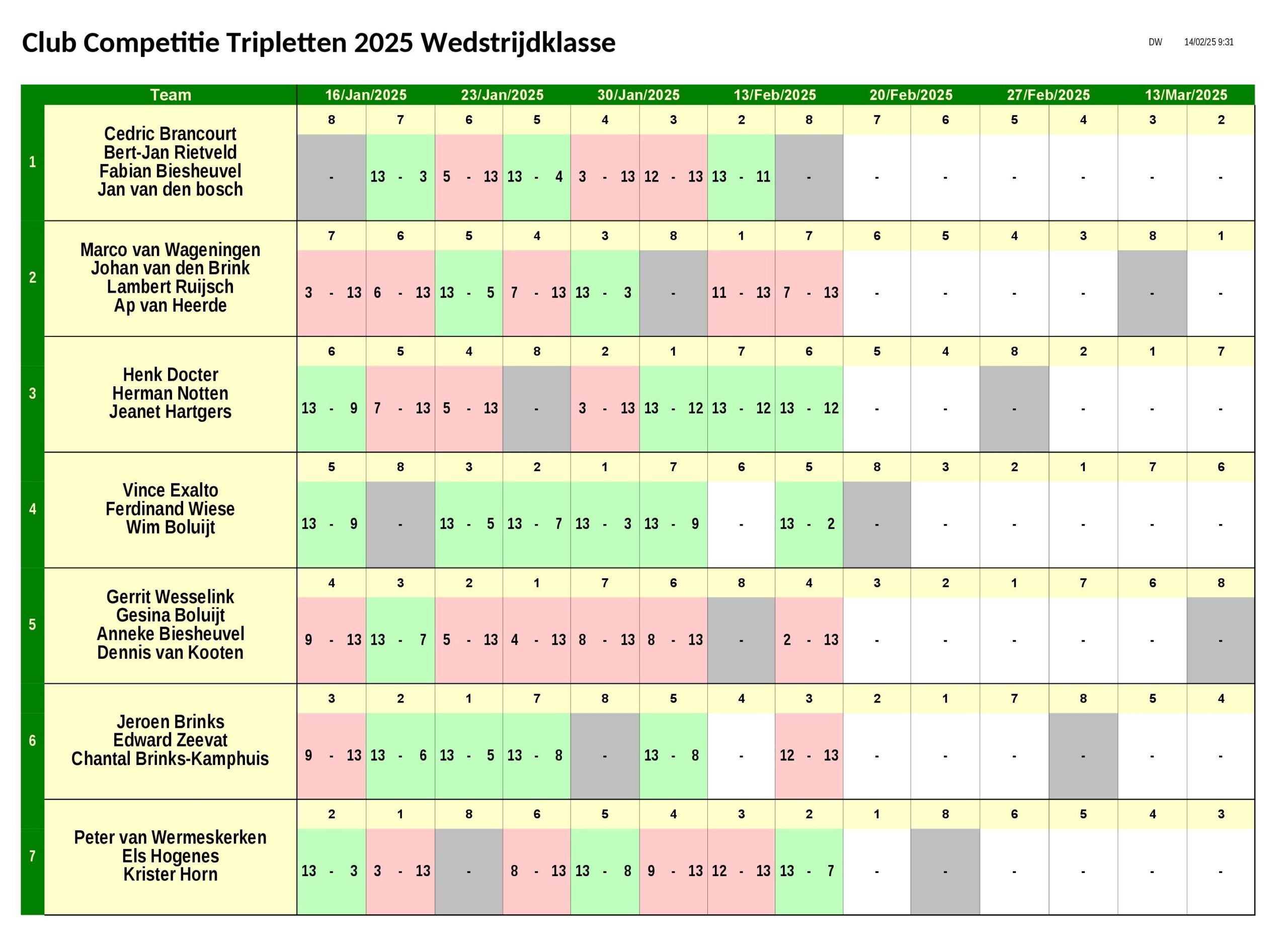 Club Competitie Tripletten 2025 (13-02-2025) February 14, 2025April 15, 2025 Albert Schuller Share this: Click to share on Facebook (Opens in new window) Facebook Click to share on LinkedIn (Opens in new window) LinkedIn Click to share on X (Opens in new window) X
