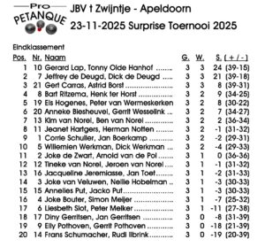 Afgelopen zondag 23 november werd door 20 teams 3 rondes gespeeld.