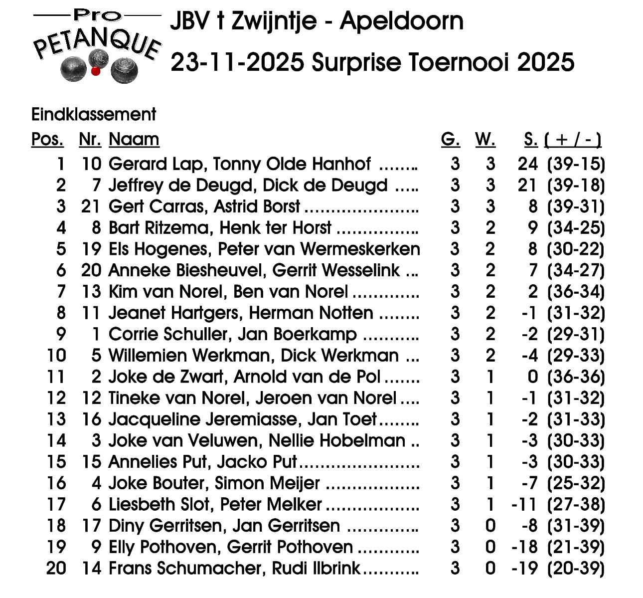 Afgelopen zondag 23 november werd door 20 teams 3 rondes gespeeld.