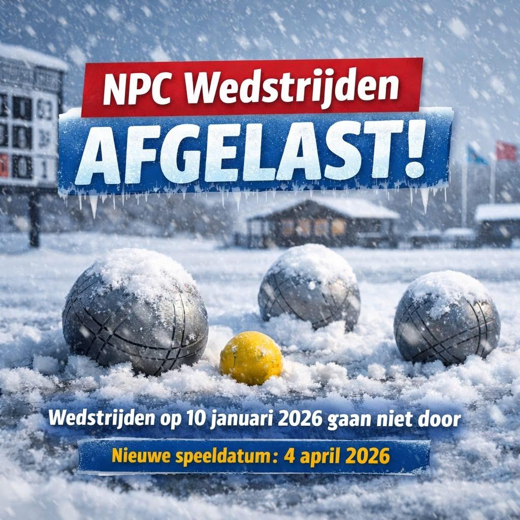NPC wedstrijden afgelast January 9, 2026 Albert Schuller Share this: Click to share on Facebook (Opens in new window) Facebook Click to share on LinkedIn (Opens in new window) LinkedIn Click to share on X (Opens in new window) X