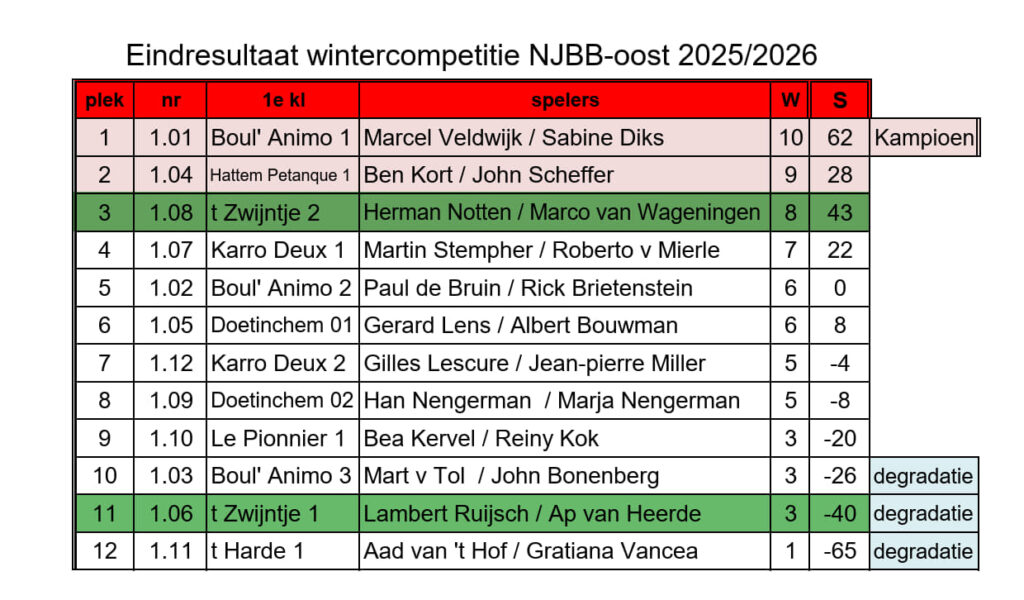 Zaterdag 14-2 was de laatste dag van de wintercompetitie doubletten 2025/2026 van District Oost.