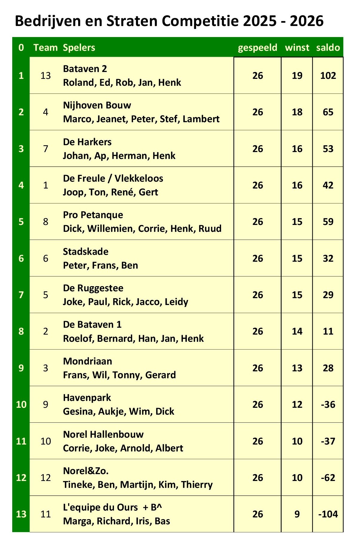Bedrijven en Straten Competitie – Stand na dag 13 (23-3-2026) March 23, 2026 Albert Schuller Share this: Share on Facebook (Opens in new window) Facebook Share on LinkedIn (Opens in new window) LinkedIn Share on X (Opens in new window) X