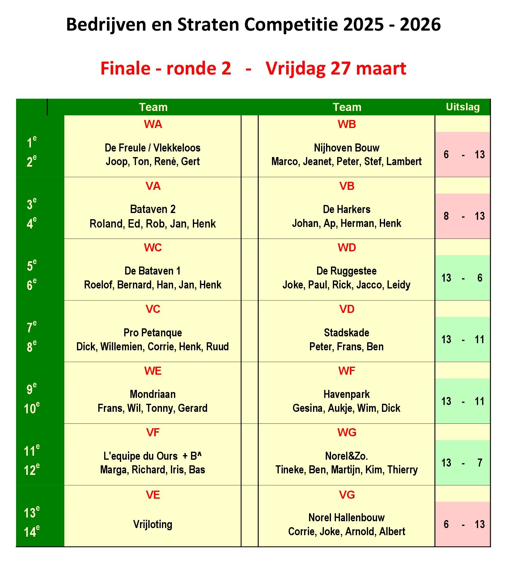 Eindstand Bedrijven en Straten Competitie 2025-2026 March 29, 2026 Albert Schuller Share this: Share on Facebook (Opens in new window) Facebook Share on LinkedIn (Opens in new window) LinkedIn Share on X (Opens in new window) X